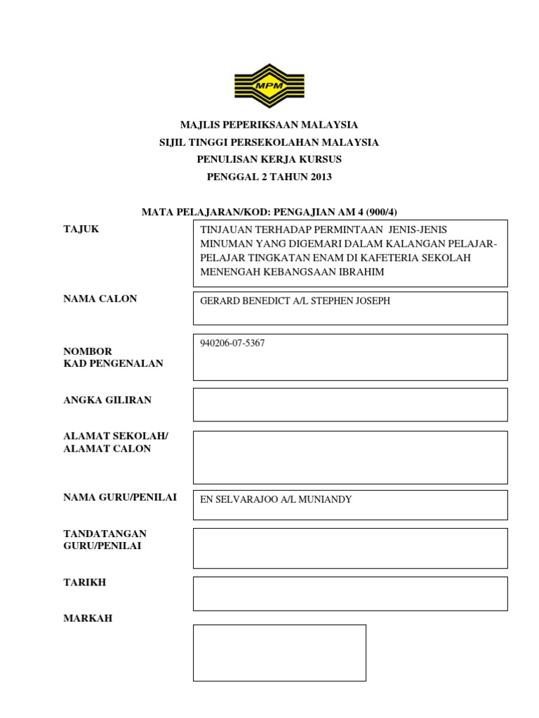 Contoh Borang Kaji Selidik Kerja Kursus Pengajian Am Penggal 2 Stpm